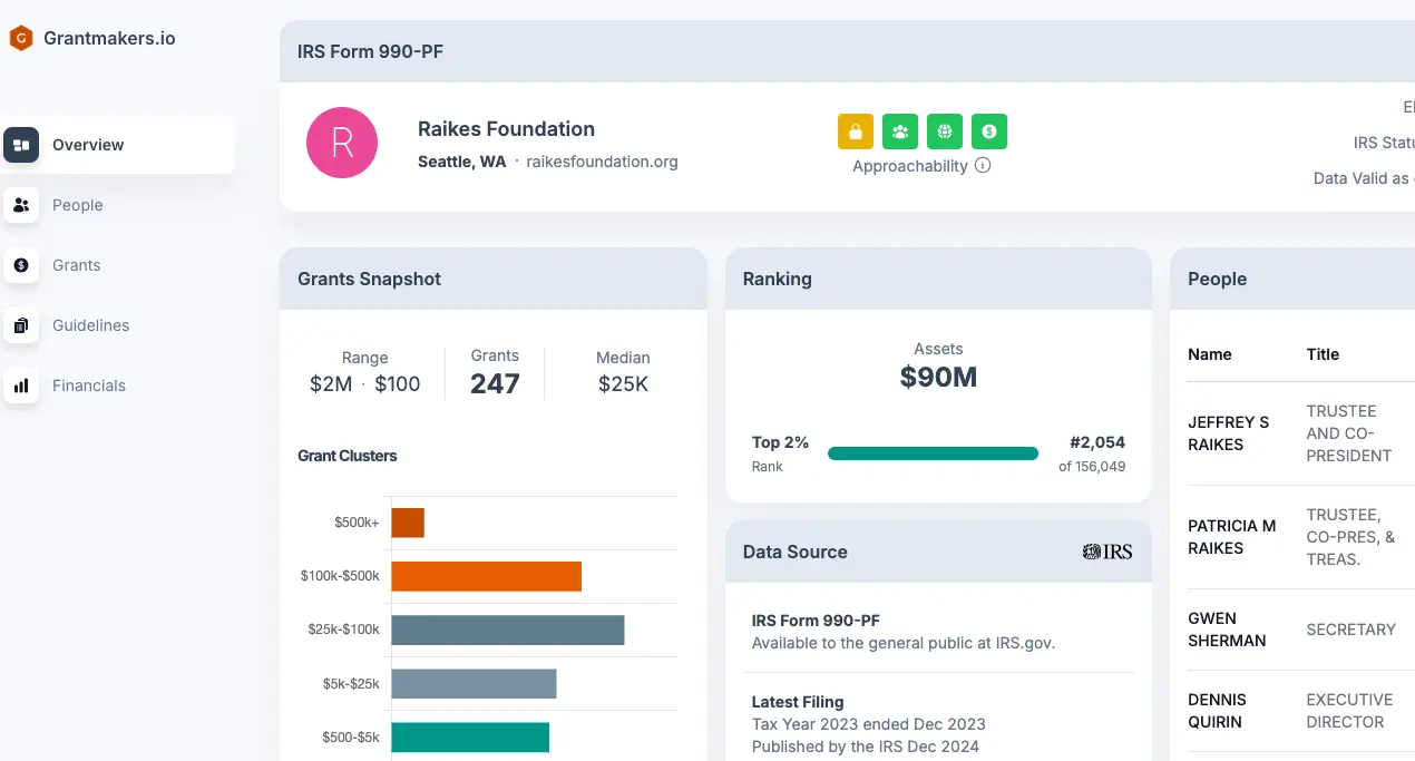 Insights into a foundation's giving patterns. Find your next funder.