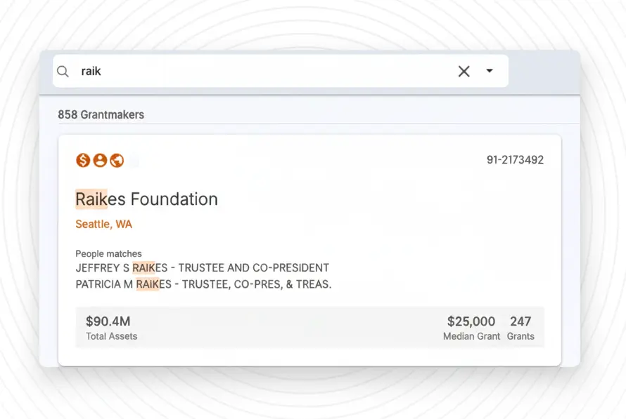 Search the entire public history of foundation giving. This is the raw material for finding funders who believe in your cause.